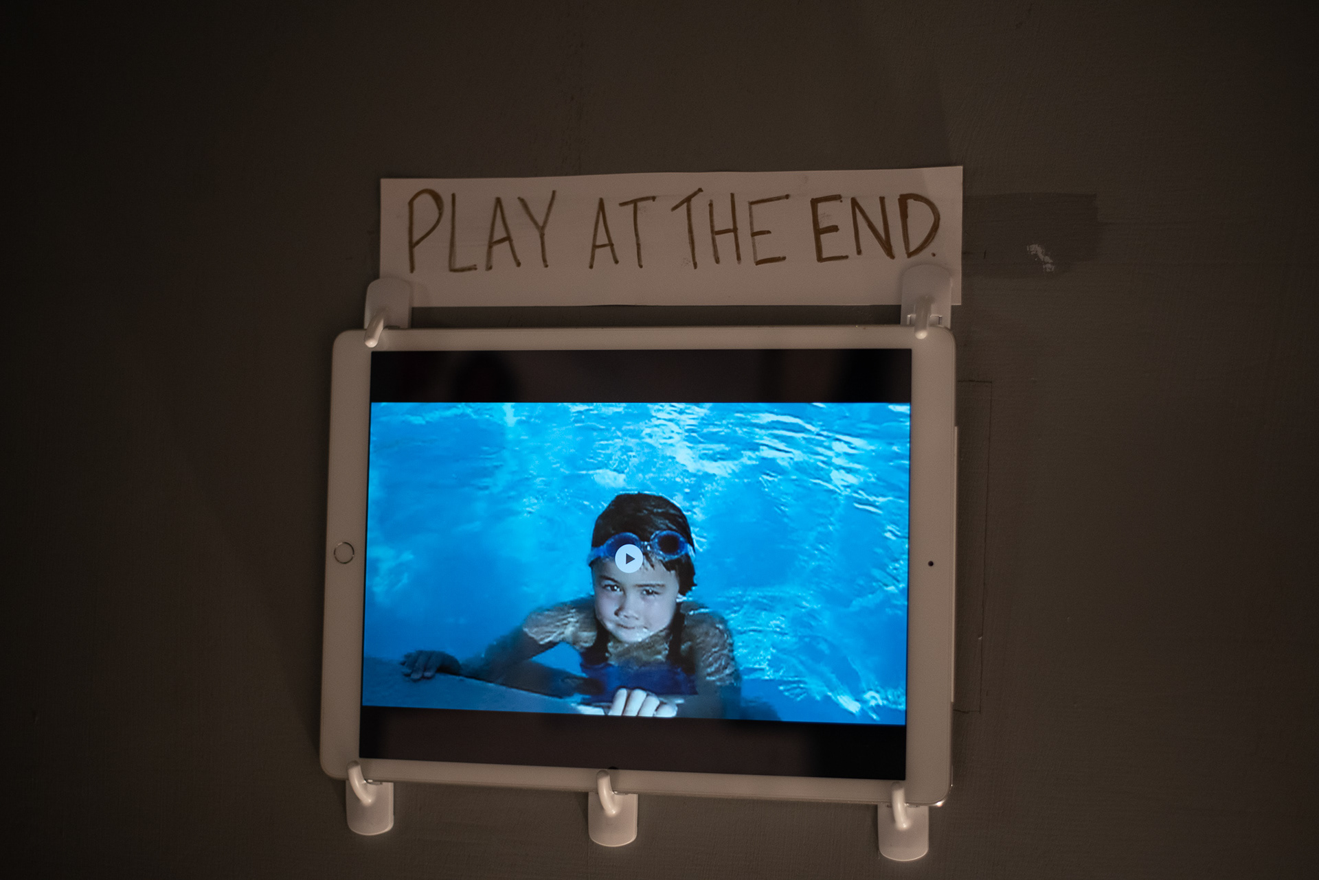 The final wall, also the back of the door, was blank with only an iPad to play my self reflection.